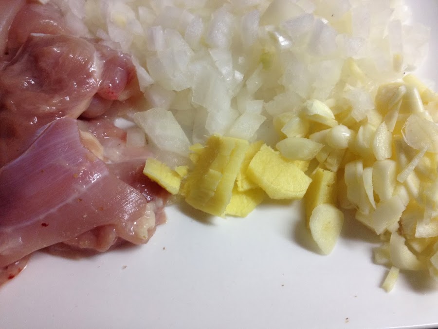 2.- Después de varios minutos las retiramos el sartén, vertemos aceite de oliva, las cebollas picadas, los ajos y el gengibre picado.