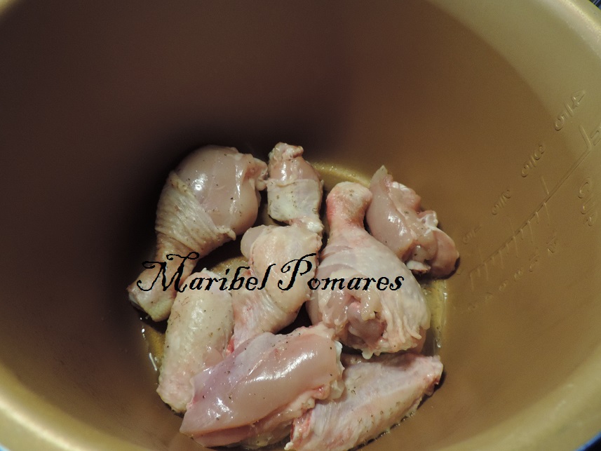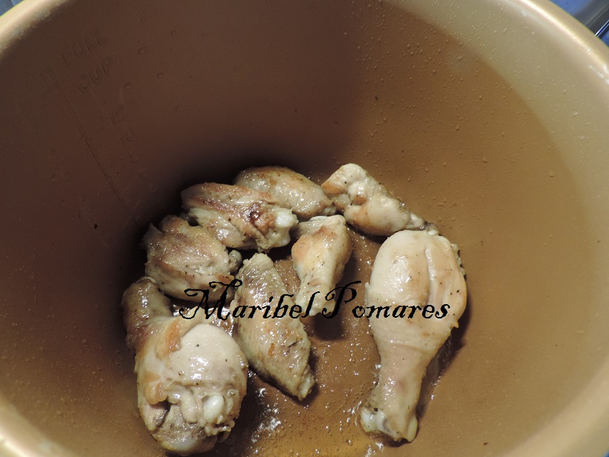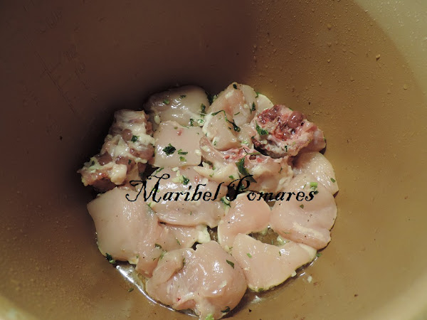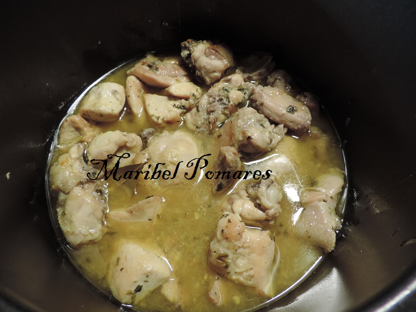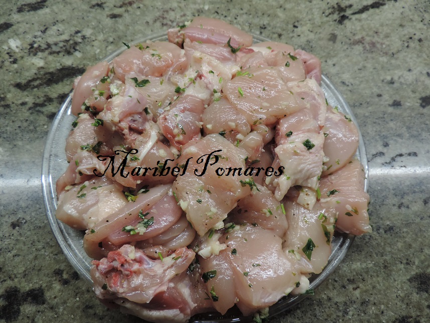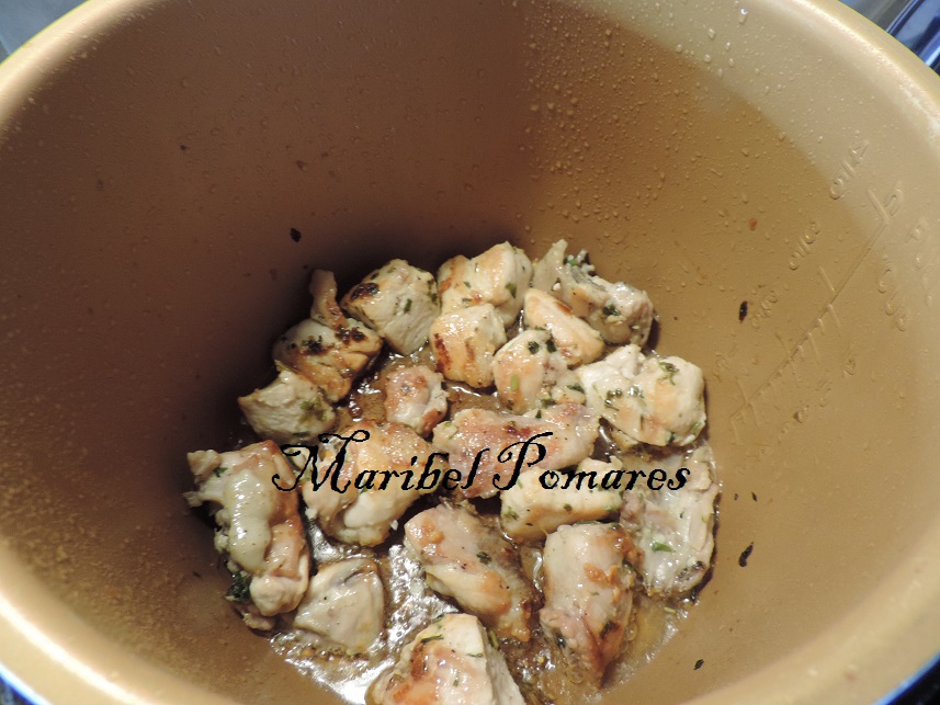 Lo ponemos con los trozos de pollo y lo dejamos que de mezcle todo bien.