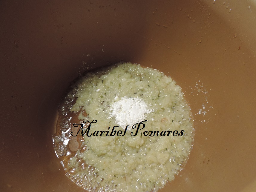 Cuando esté casi transparente añadimos la maicena.
