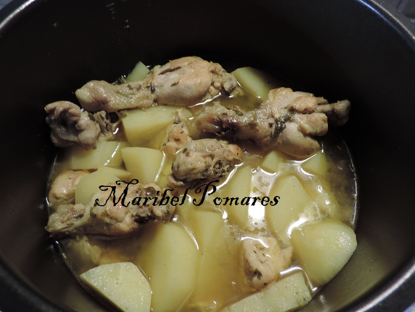 Modelo D: Menú pollo/carne, 10 minutos, presión baja, válvula cerrada, ya que los trozos eran pequeños.