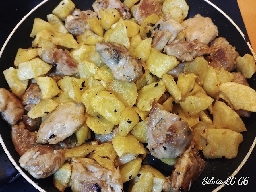 Mientras vamos a pelar las patatas, a cortarlas en trozos y a freírlas. Reservamos.