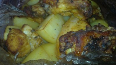 Pollo con patatas, con el "sobrecito Maggico" de alitas de pollo con miel de Maggi directo al horno.