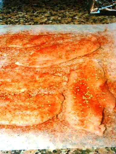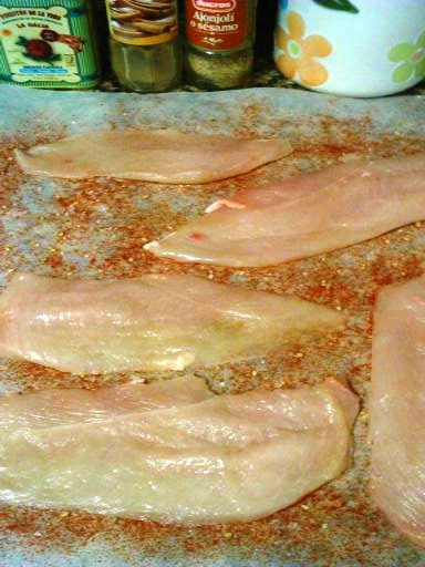 Colocar encima las pechugas y volver a espolvorear por encima de ellas todas las especias y semillas.