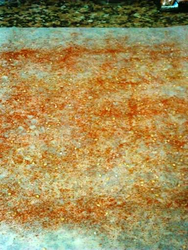 En uno de los trozos de papel espolvorear sal, pimienta, pimentón, canela y semillas de sésamo al gusto (¡ojo que la canela también pica!).