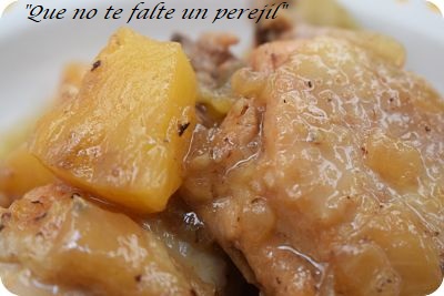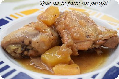Y ahora seguimos cocinando el pollo con piña en almíbar.