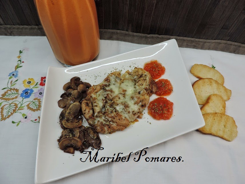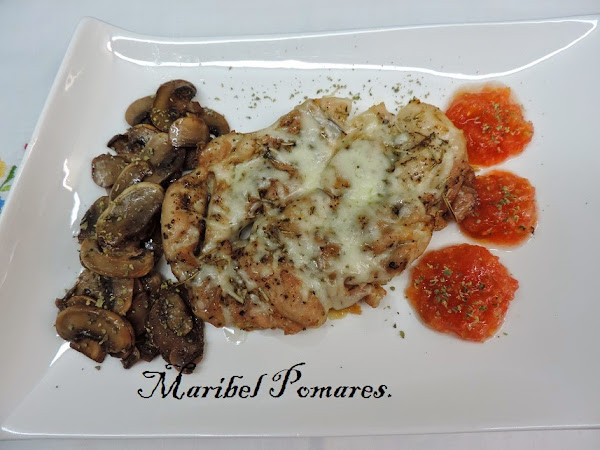 Poner en el plato de servir con el champiñon, tomate rallado y espolvoreamos con orégano.