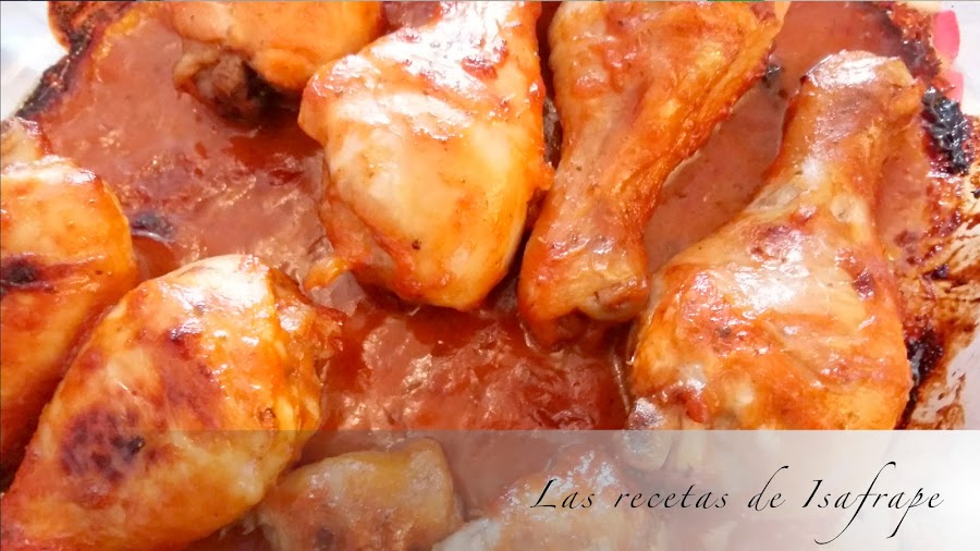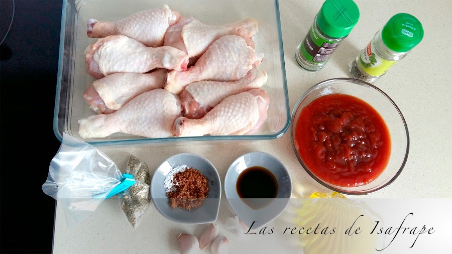 Pues mira por donde, estando en la carnicería vi que los jamoncitos de pollo estaban de oferta, y como las ofertas hay que aprovecharlas (las que interesan, claro está), pues los compré. Ya tenía mi pollo para hacerlo al horno, ahora me faltaba la salsa barbacoa.