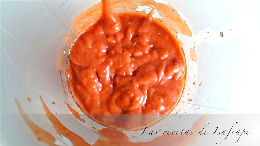 Ponemos el pollo en una fuente. Batimos el resto de ingredientes hasta que nos quede una pasta.