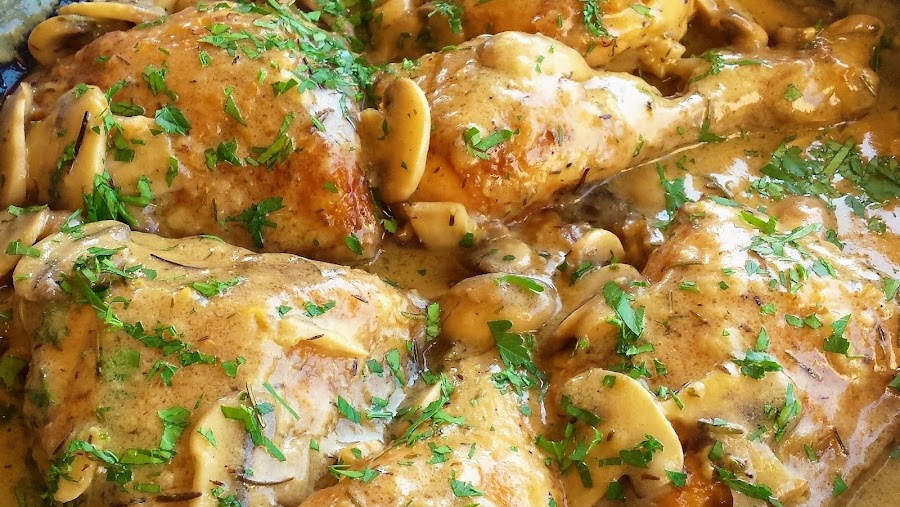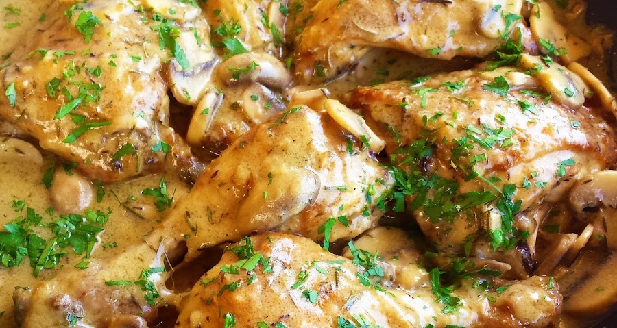 Pollo con salsa cremosa de champiñones y hierbas provenzales