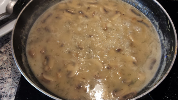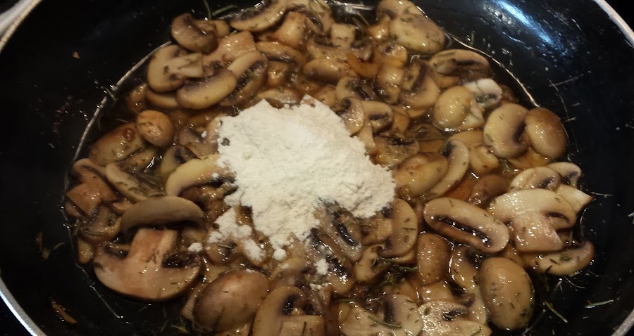 Pollo con salsa cremosa de champiñones y hierbas provenzales, preparación: