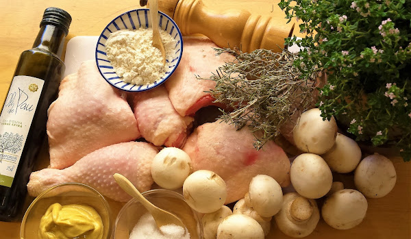 Pollo con salsa cremosa de champiñones y hierbas provenzales, ingredientes: