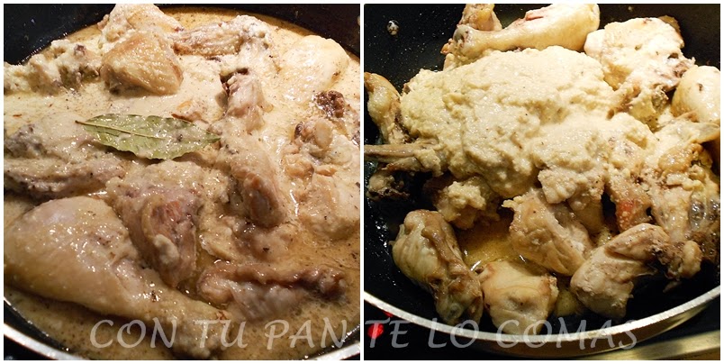 9. Lo dejamos a fuego medio-bajo hasta que el pollo esté totalmente tierno. Hay que vigilarlo para que no se pegue la salsa. Si lo necesita le añadimos un poquito de agua.