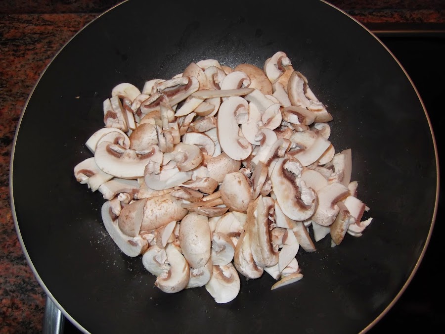 Lo primero que hice fue echar un chorro de aceite en la sartén y poner a pochar el ajo y la cebolla cortados en trozos como luego lo vais a triturar no hace falta que los trozos sean muy pequeños. Una vez que los tenéis cocinado sacáis y reserváis. En la misma sartén colocáis los champiñones salados a fuego fuerte y los cocináis con aceite hasta que veis que adquieren ese color marrón que les caracteriza. Del kilo de champiñones separáis unos