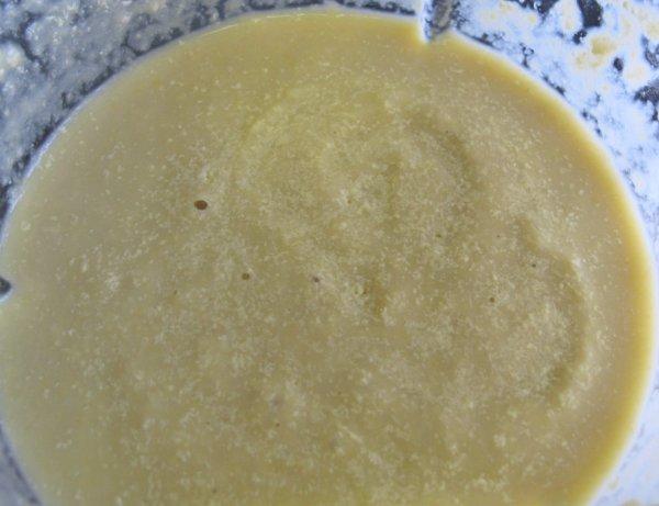 Mientras, pon la lata grande de maíz y la de leche de coco en el vaso de la batidora y tritura completamente.