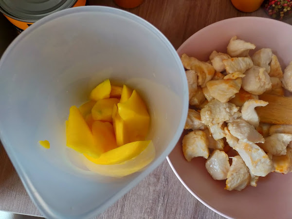 Añadimos el pollo con la salsa de mango y a disfrutar!