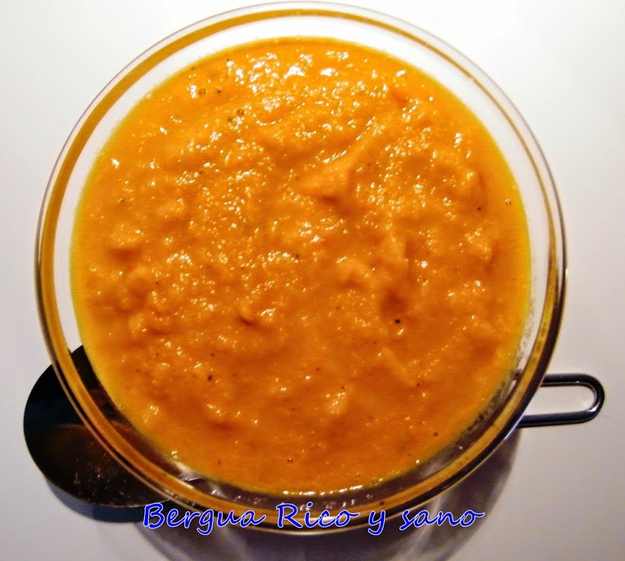 4. Cuando el tomate se deshaga, incorporamos la zanahoria, salpimentamos al gusto y vertemos sobre ella la mitad del caldo (también puede ser una pastilla de caldo disuelta en agua caliente). Tapamos y dejamos que se vaya cociendo la zanahoria. Hay que vigilar y remover de vez en cuando para que no se nos seque ni se nos pegue.