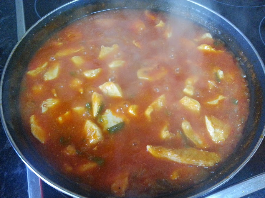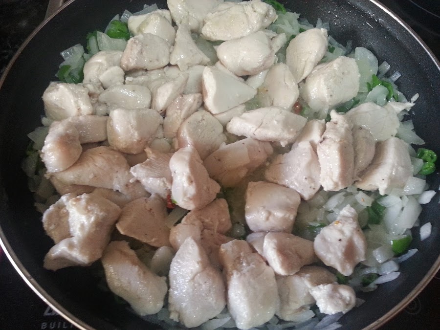Sofreímos unos minutos y volvemos a poner el pollo.