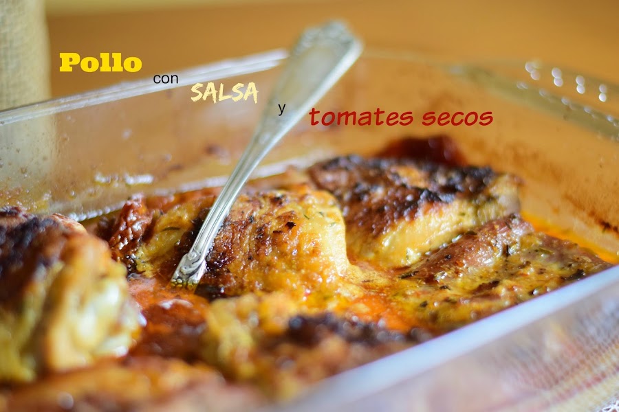 Uno de los ingredientes de este pollo con salsa son los tomates secos, llenos de sabor a verano, si, sabor a verano porque en mi zona los cosechan en esta estación del año, se secan, abiertos por la mitad, con abundante sal en cañizos, expuestos al sol durante unos días y después el resto del año se consumen rehidratados.