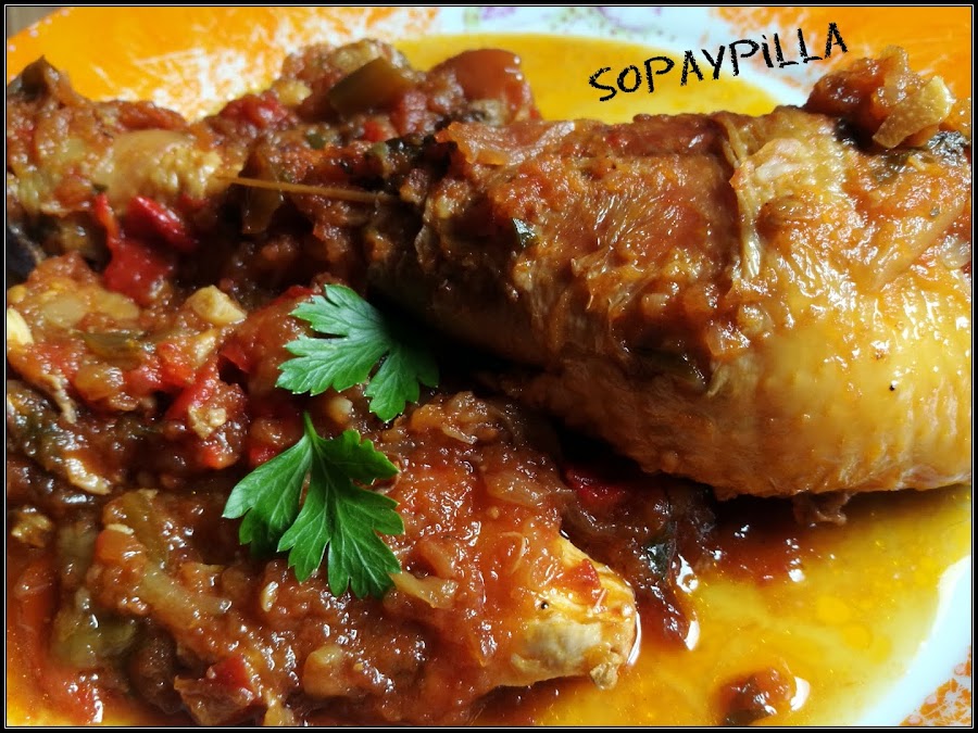 La samfaina tambien le va de maravilla al pescado, como por ejemplo con unos lomos de bacalao, pero hoy ha tocado pollo. Os cuento...