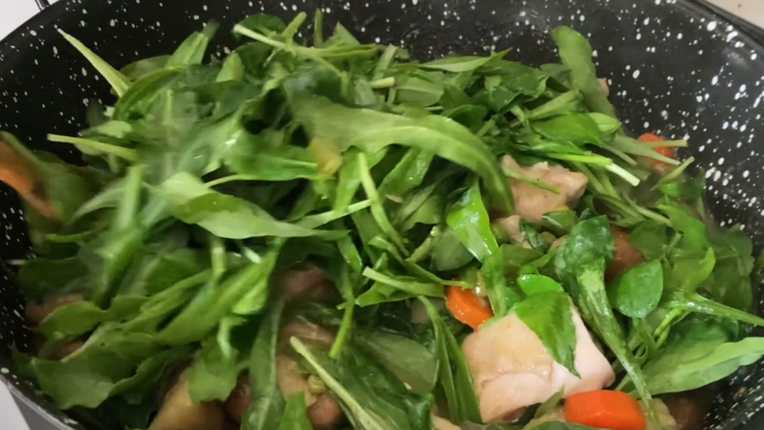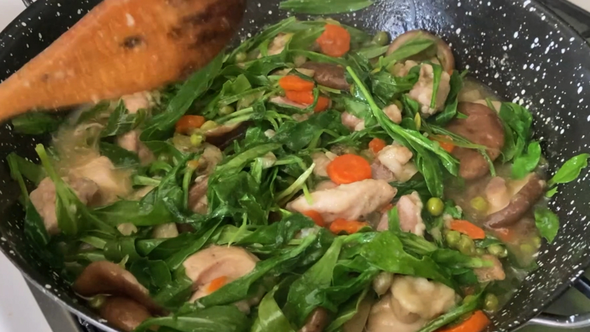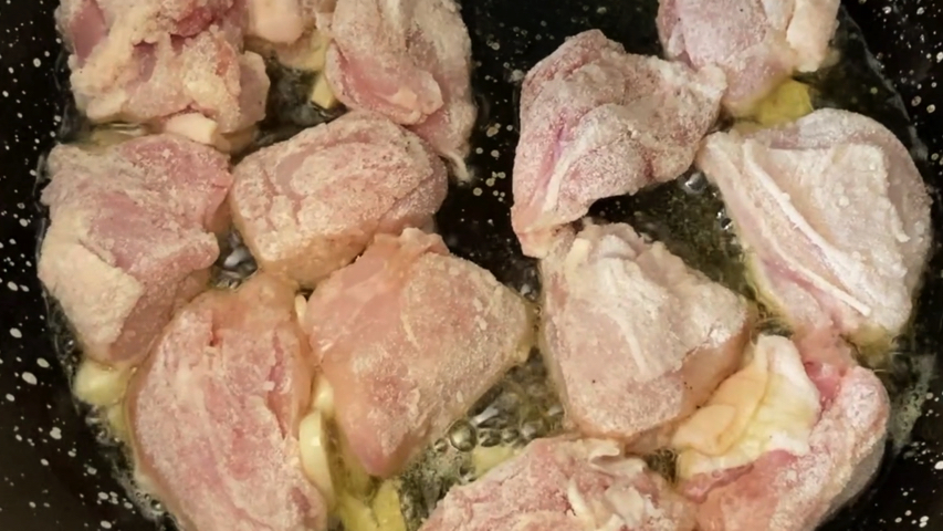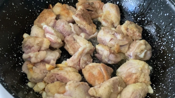 Cuando "bailen" los ajos incorpora los trozos de pollo enharinados y dóralos.