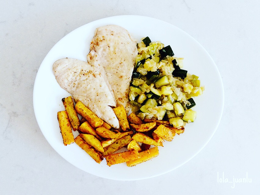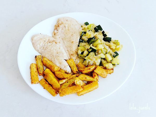 En el taller al que asistí el mes pasado en Ikea nos recomendaron la siguiente combinación: Pollo, sofrito de calabacín y batata.