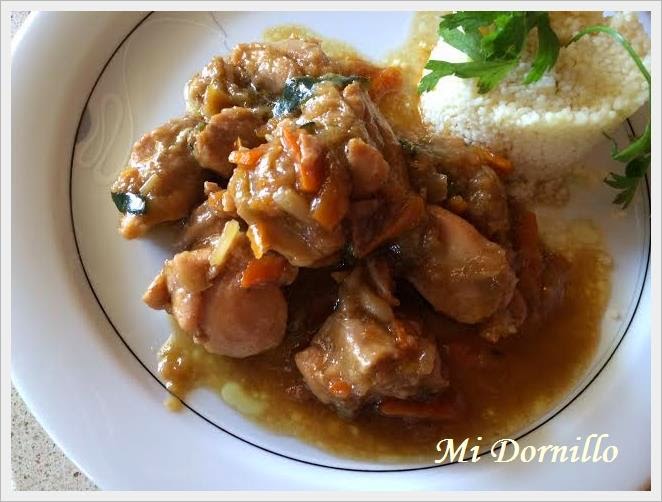 Cuando este rehogado, le añadimos el vino o Coñac y dejamos que evapore, después le ponemos la soja y dejamos como 10 minutos mas. Podemos acompañar de ensalada o cous-cous.