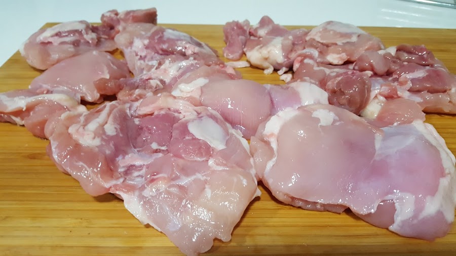 1.- Troceamos los contramuslos de pollo y reservamos.