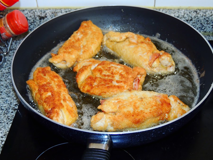Cuando el aceite está caliente, se fríen las pechugas.