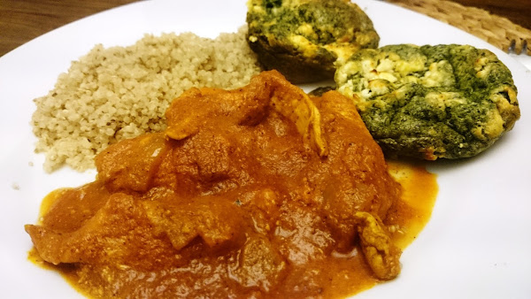Una vez pochada la cebolla, añadimos el pollo y cocinamos durante 4-5 minutos, removiendo hasta que se dore. Añadimos el ajo y cocinamos 1 minuto más. Incorporamos la pulpa y el puré de tomate removiendo, llevamos a ebullición y bajamos el fuego para que cueza durante 4-5 minutos, hasta que el pollo esté hecho.