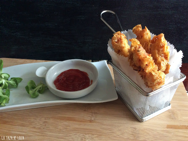 Se calienta el aceite en una sartén y cuando este caliente se baja el fuego y se van friendo poco a poco. Hay que hacerlos a fuego bajo al principio pues sino quedaría crudo al ser los trozos de pollo un poco gruesos.