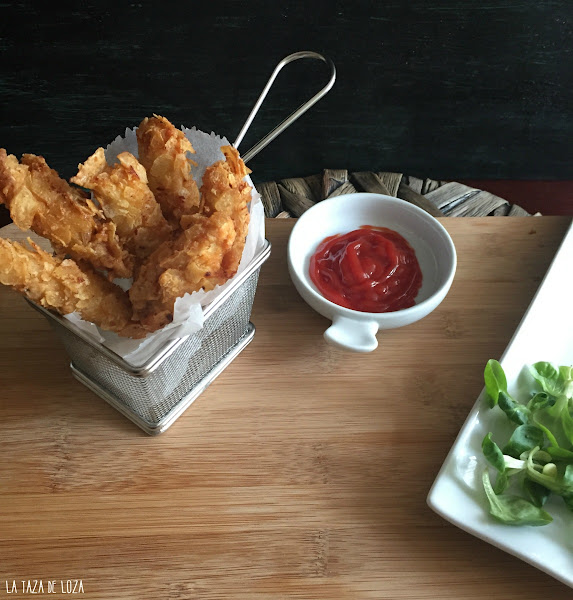 Se escurren sobre un plato con papel de cocina y se colocan en la bandeja de servir o donde os guste para llevarlos a la mesa. Yo los coloqué en estas cestas tan chulas que compré el año pasado y que me encantan. Nada más. Listo nuestro pollo crocante con patatas chips. Esto me lo cuentan sin haberlo probado y no me lo hubiera podido creer. Los niños agradecerán esta receta de pollo. Ya me contaréis.
