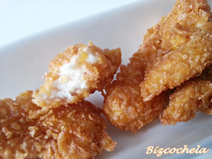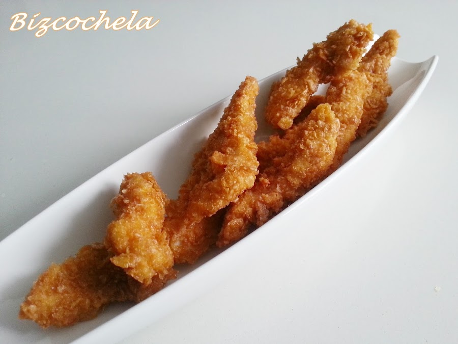 La verdad es que en casa el pollo empanado gusta muchísimo, pero hoy me apetecía variar la receta un poco, así que hice este experimento, y el resultado ha sido estupendo.