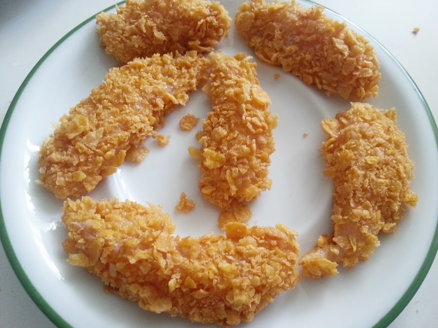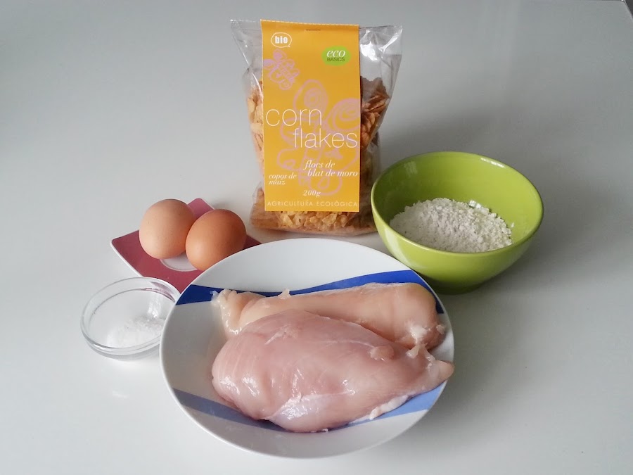 A diferencia del empanado normal, lo que he utilizado ha sido cereales triturados, en esta ocasión han sido Cornflakes o lo que es lo mismo, copos de maíz de Eco Basics.