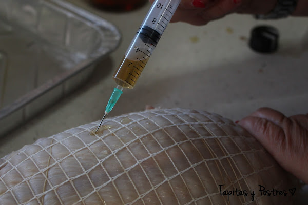 Sazonamos por fuera, embadurnamos con aceite y le inyectamos brandy por distintos lugares.