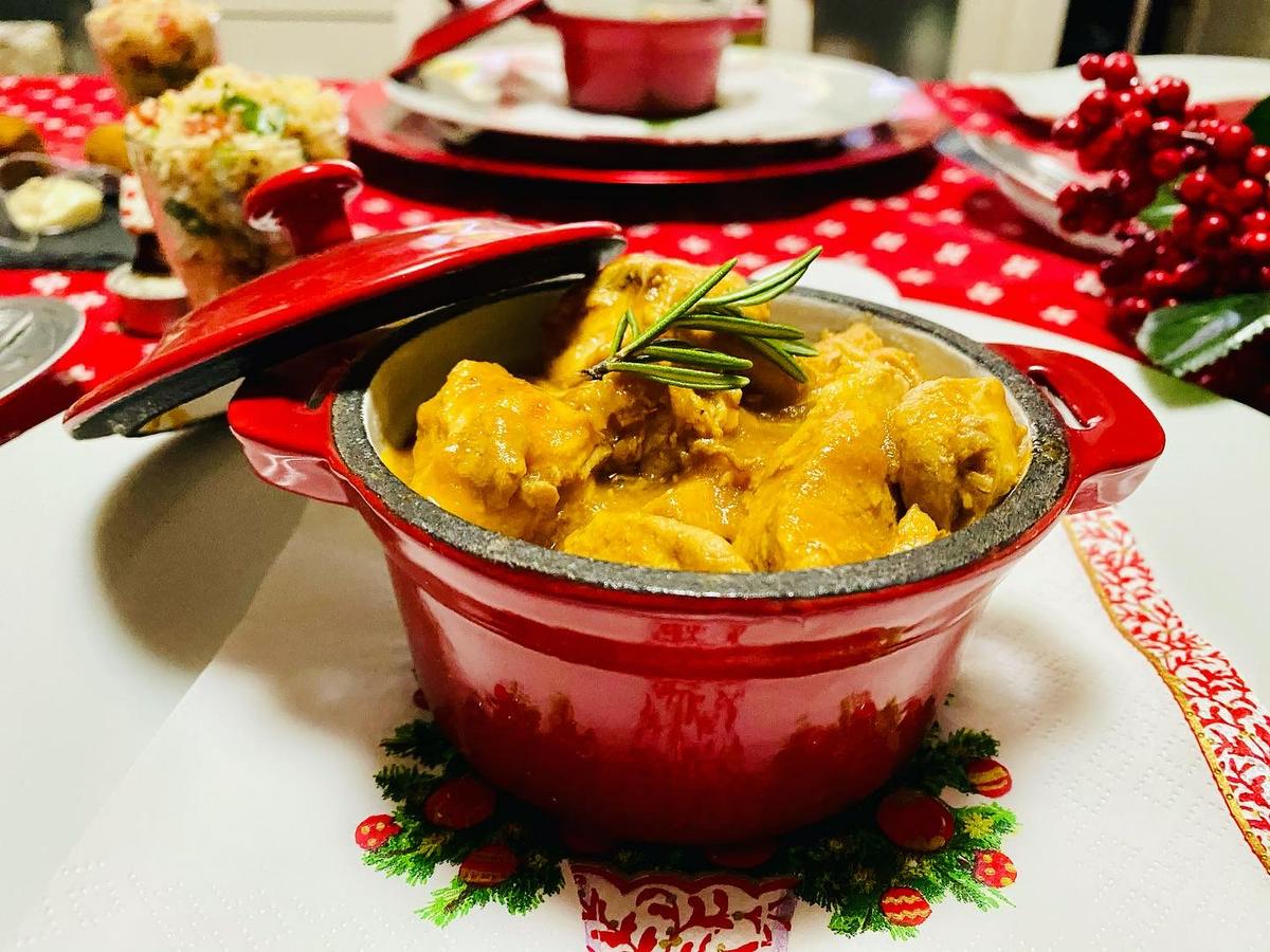 Es una receta muy, muy fácil de preparar y rapidísima. Solo necesitáis una olla exprés (es como mejor sale) y un buen pollo. Yo lo compro de corral y le pido a la carnicera que le quite la piel, lo deshuese y lo corte en trozos. Puedes prepararlo con antelación a la comida o a la cena (hasta tres días queda perfecto) y te vale para cualquier ocasión. Eso de que en Navidad, por ejemplo, solo se deben comer platos carísimos con ingredientes que nunca usas, puede valer de forma puntual (no digo que no), pero platos como este, bien presentados, son ricos y bonitos.