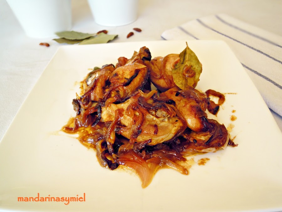 Tengo que confesar que es la primera vez que escabecho carne, pero te aseguro que no será la última, el pollo está riquísimo, la acidez del vinagre junto al toque picante de la guindilla le da un sabor de categoría. Si te gustan los sabores algo fuertes no dejes de probarlo!!