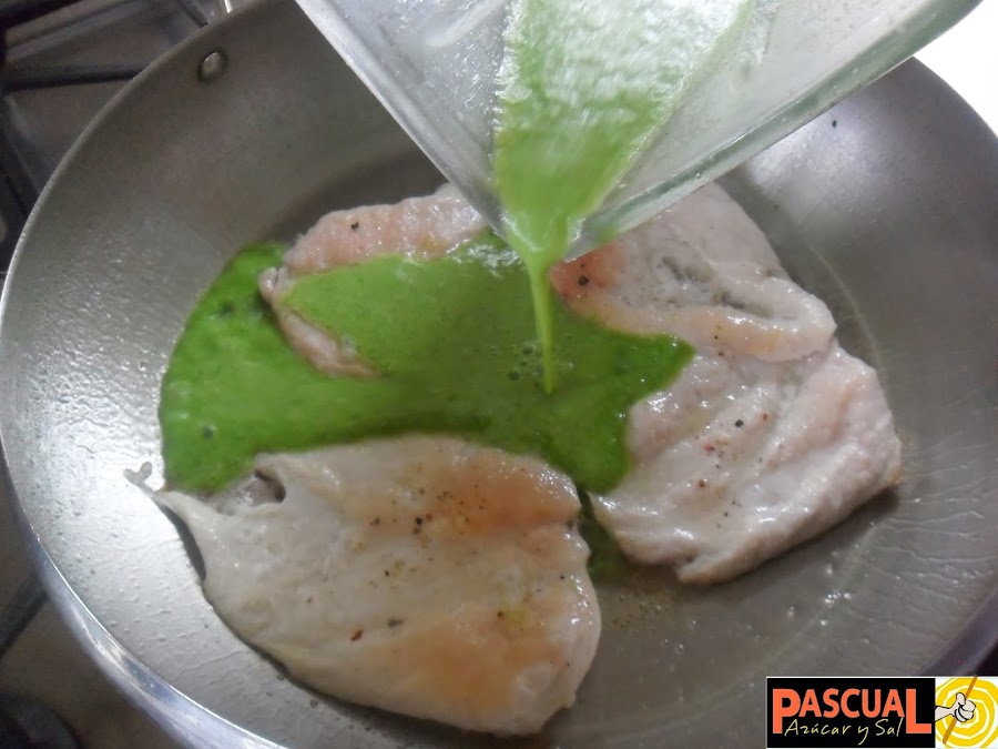 · Luego agregamos esto sobre las pechugas, que deben estar ya bien cocinadas.