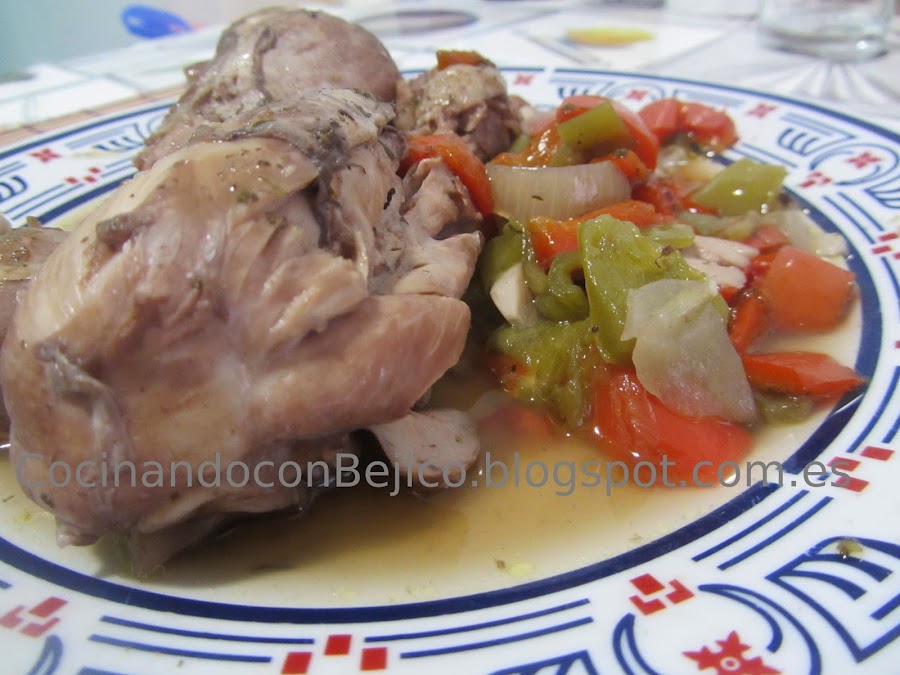 Mi primera receta de No pan, ha sido este guiso de pollo con verduras, que habitualmente haríamos en el horno, con el consiguiente gasto de luz y trabajo posterior de limpiar el horno.