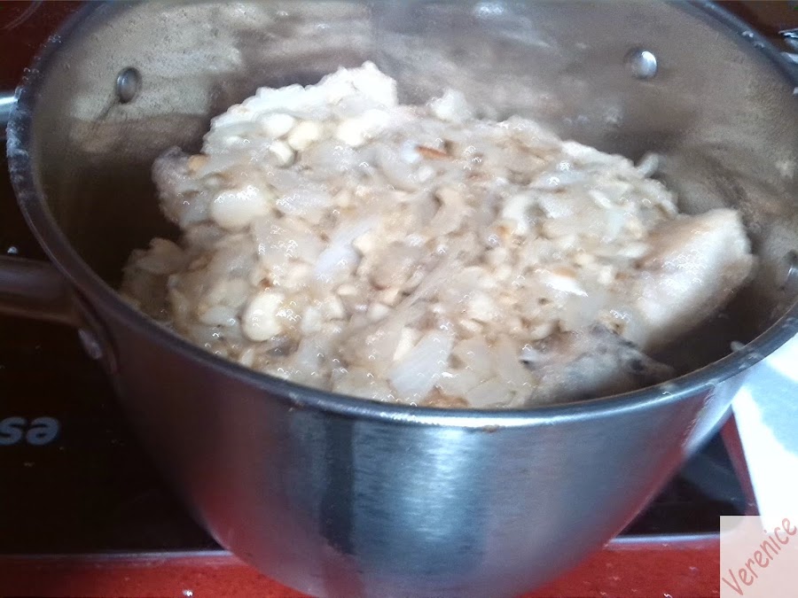 Ponemos una olla al fuego medio con aceite, suficiente para cubrir las medias piezas y cuando esté doradito damos la vuelta