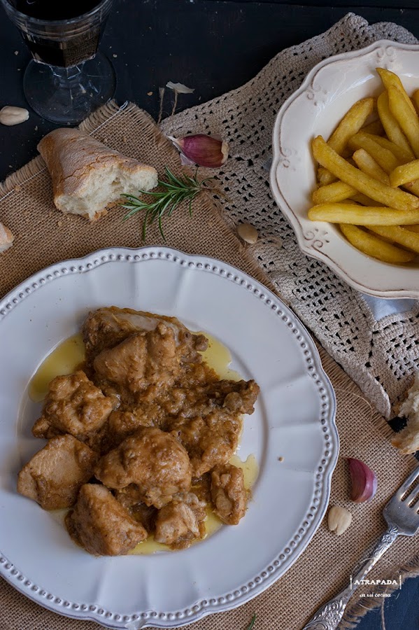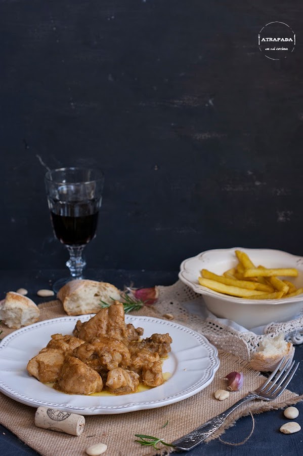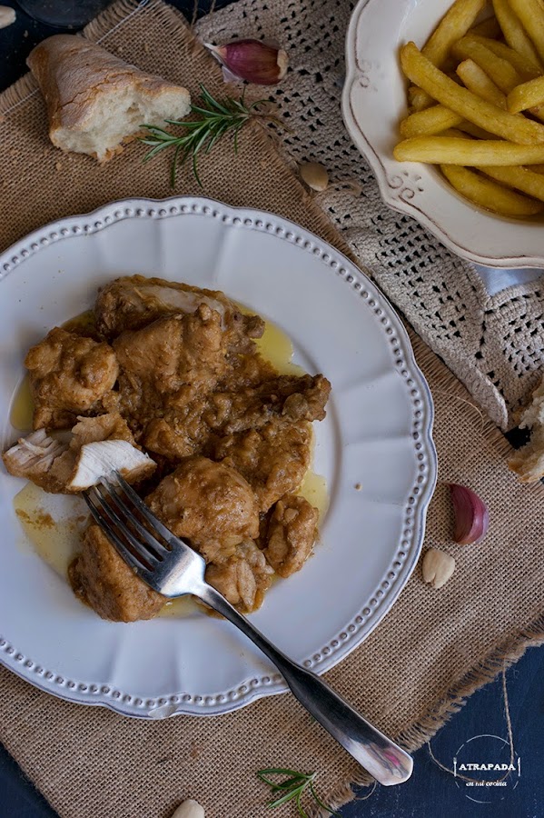 De nuevo un plato con nombre propio, el pollo en "pepitoria". La pepitoria es una forma de cocinar diferentes platos de carne, generalmente pollo o gallina, donde los jugos que suelta la carne se suelen mezclar con yema de huevo cocido y almendras. Un plato que parece ser procedente de la cocina árabe y que antiguamente se preparaba con despojos de aves. El otro día en Masterchef fue una de las recetas que elaboraron los concursantes y me di cuenta que era una receta que faltaba en mi blog. Por lo que manos a la obra y aquí está mi receta, vista en el blog De Rechupete.