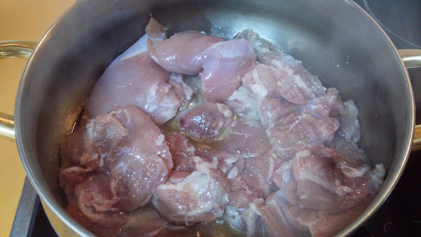 Lo primero que haremos será salar el pollo y ponerlo a dorar en una cacerola amplia.