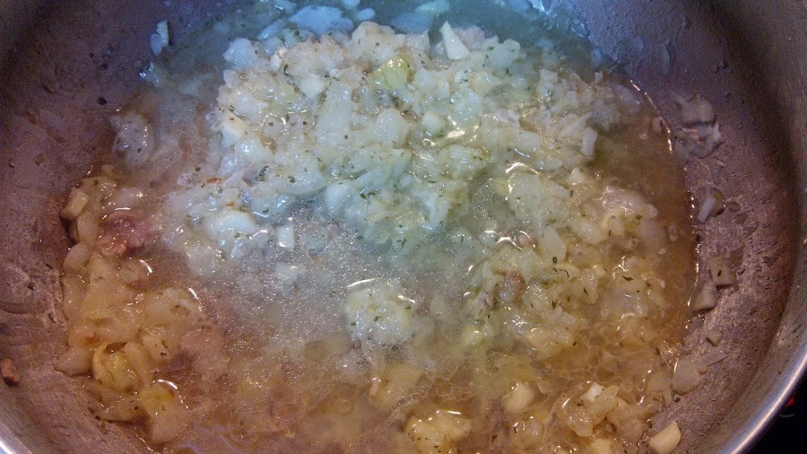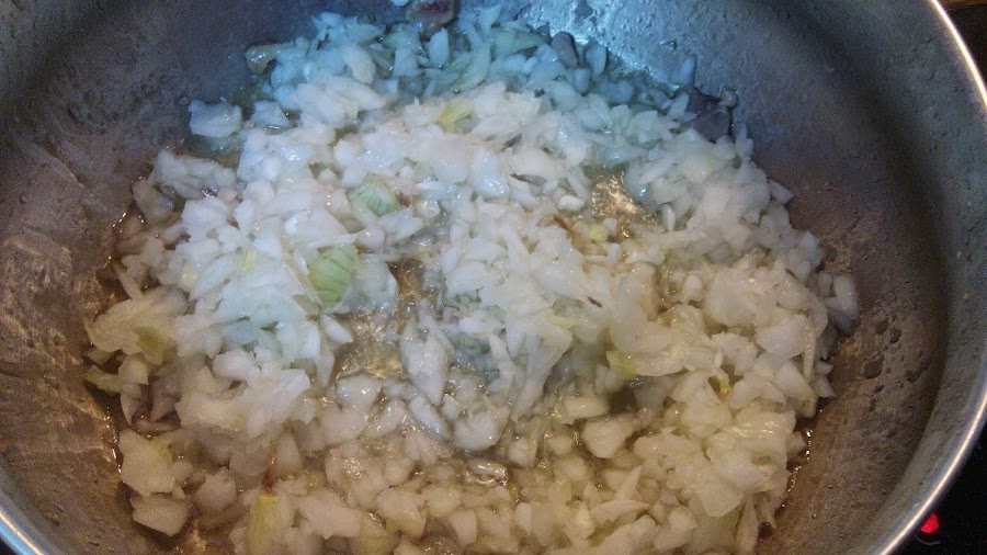Una vez bien doradito, sacamos y reservamos y en el mismo aceite pochamos la cebolla picada.