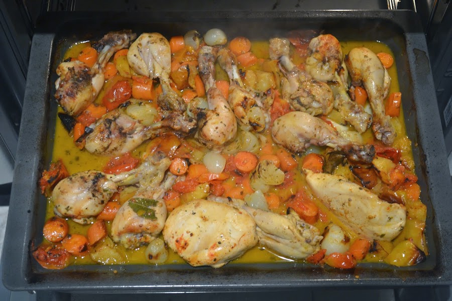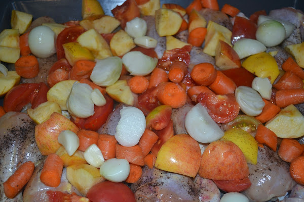 Lo más importante para que os quede perfecta es utilizar buenas manzanas. Mi madre utiliza las Golden y quedan fenomenales. Además, vigilad bien el punto del pollo y de las verduras (¡que no se os pase!). La temperatura del horno ya veréis que es bajita para que se cocine lentamente.