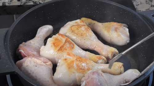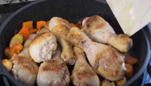 Ahora, incorpora de nuevo el pollo en la cazuela junto con el jugo que haya soltado en el plato.