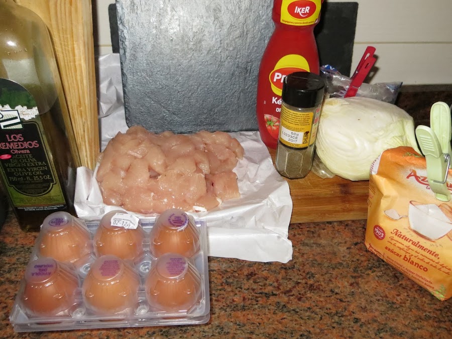 - 500 gramos de pechuga de pollo (cortado en cubos de unos 3 centímetros).