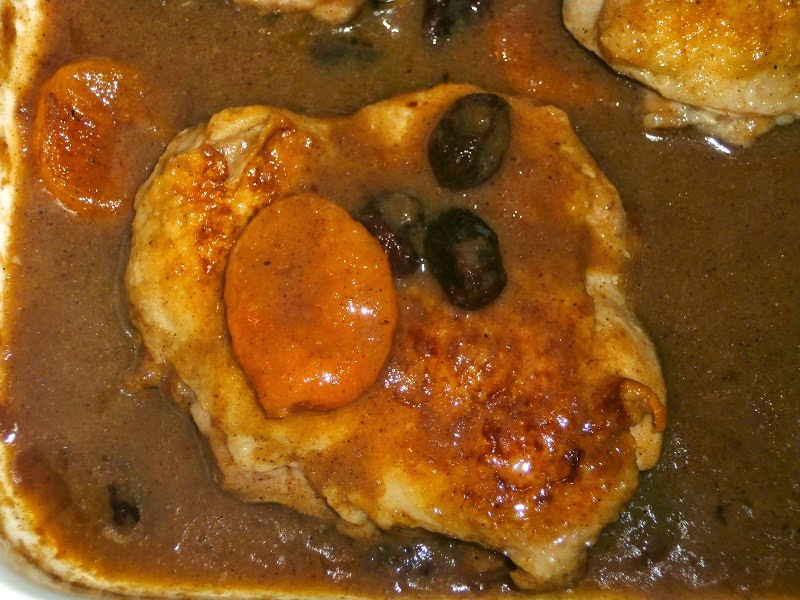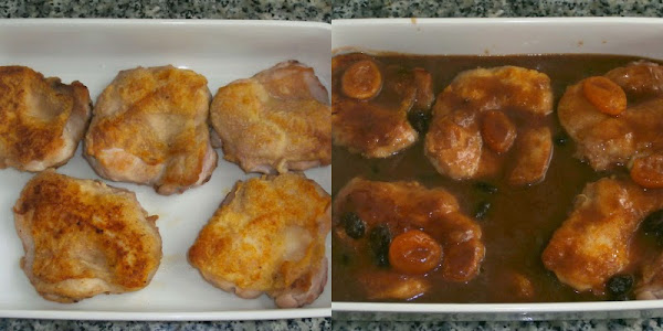 6.- Añade los orejones y las pasas y deja reducir y espesar un poco la salsa