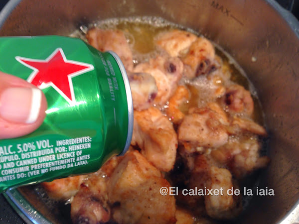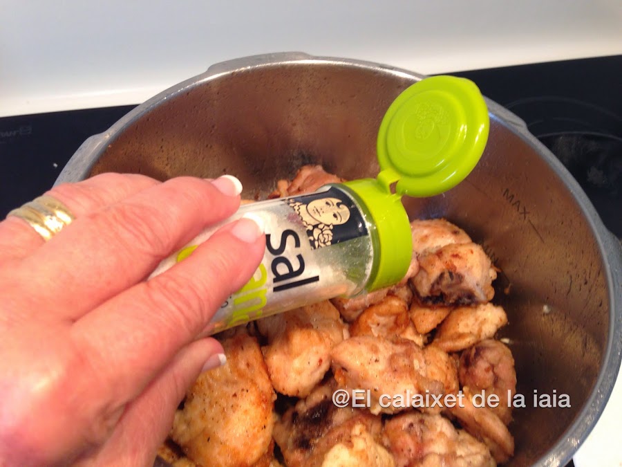 Se trata de un pollo en salsita que se hace en un plis plas en la olla rápida, y que podemos dejarnos listo para el regreso de la playa o montaña, o llevarlo en una fiambrera para degustarlo, tras un baño en el mar, en la piscina, o rodeados de naturaleza, bajo la sombra de un buen árbol.