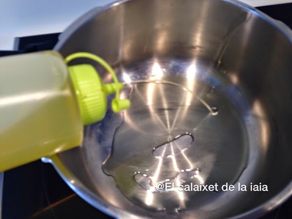 Ponemos el aceite a calentar, y ponemos sal para evitar que salpique demasiado