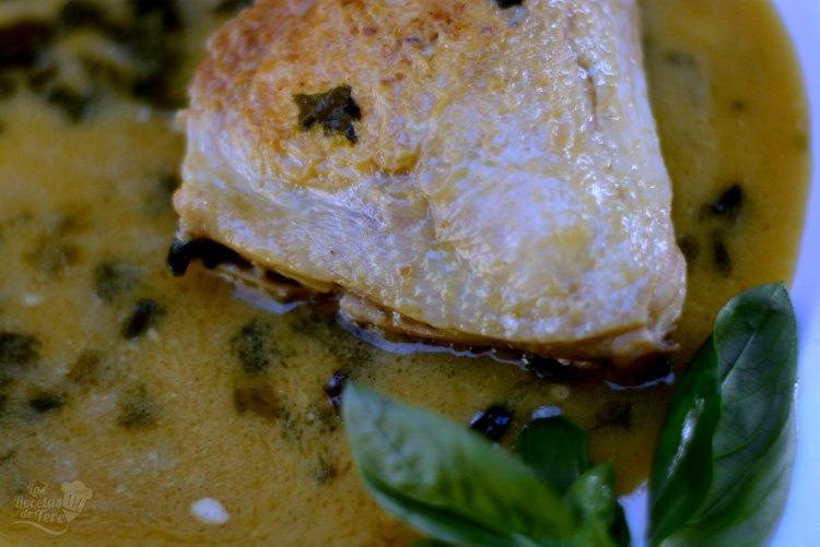 Delicioso pollo en salsa de coco y albahaca