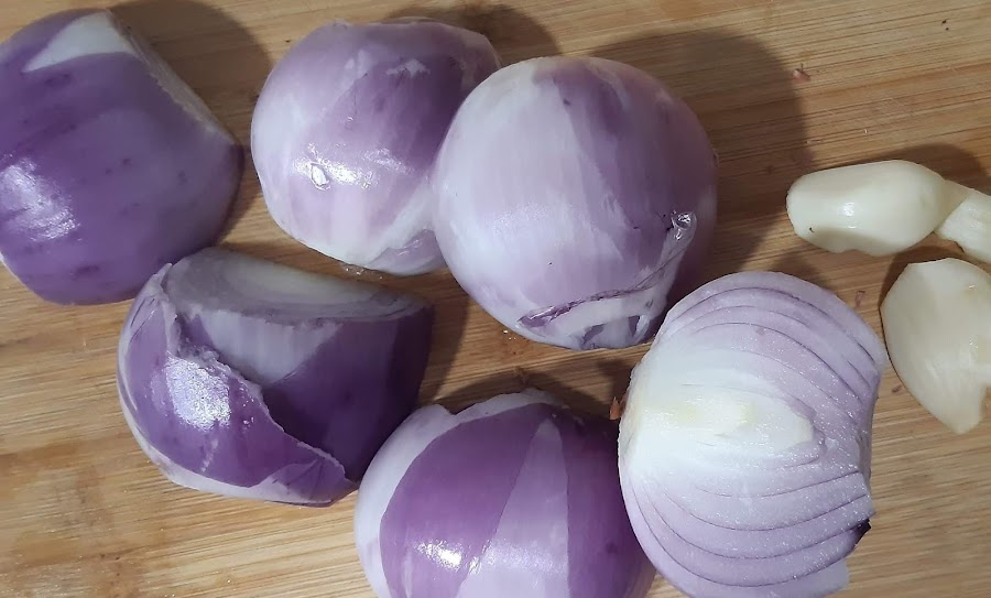 tres cebollas moradas pequeñas